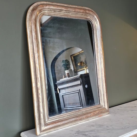 Late 19th Century French Louis Philippe Style Silver Gilded Mirror With Incised Floral Design