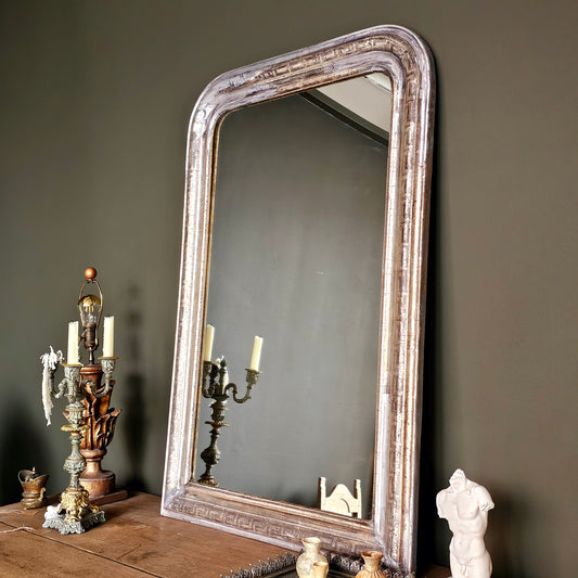 Mid 19th Century French Silver Leaf Louis Philippe Mirror With Greek Key Motif