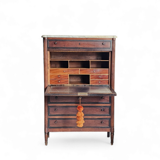 Early 19th Century French Mahogany Secretaire Abattant with Marble Top, 56”H