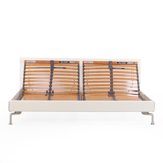 Contemporary Hülsta King Bed Frame in White Lacquer with Brushed Aluminum Legs