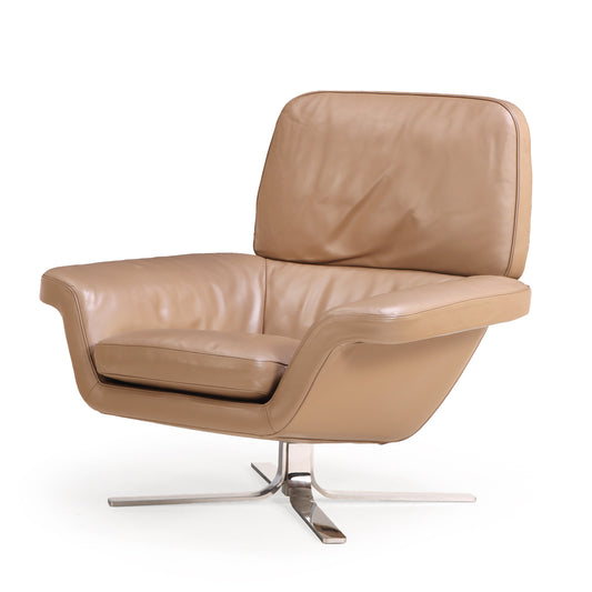 Minotti Blake Soft Chair and Ottoman, Leather with Chrome Base