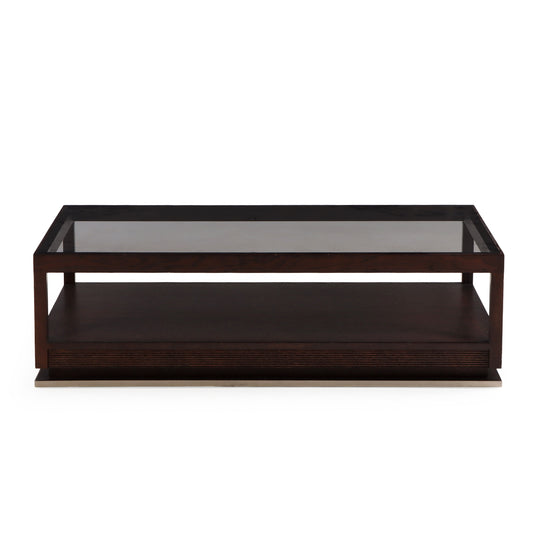Contemporary Coffee Table, Attributed to Minotti, Glass Top with Espresso Frame