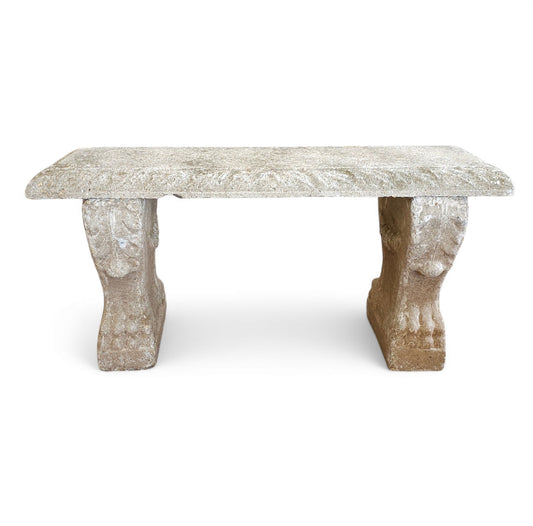 Antique Cast Stone Bench With Acanthus and Paw Motif