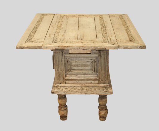 19th C English Draw Leaf Pedestal Table in Carved Oak