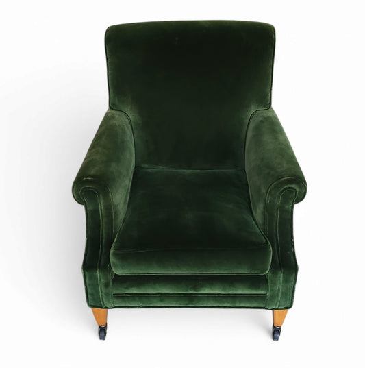 Handcrafted British Rolled Arm Club Chair in Green Velvet