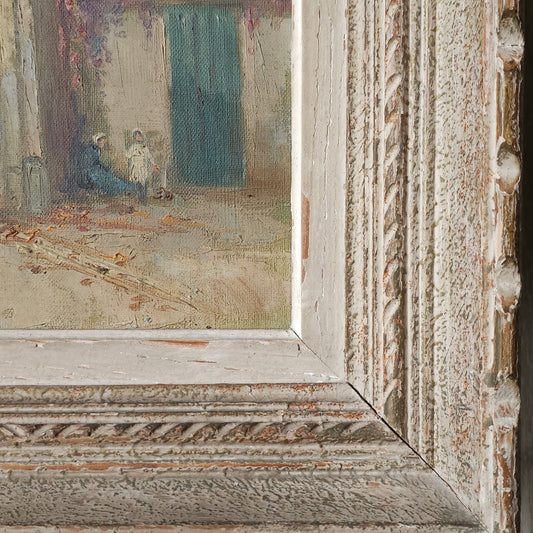 Didier Chort (French, b. 1951), White House with Blue Gate, 1987, Oil on Wood Panel, Framed in a 1940s Modernist Frame
