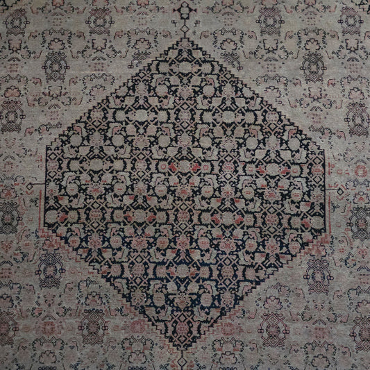 Early 20th Century Persian Area Rug in Rose, Deep Blue & Terracotta