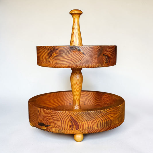1970s Swedish Pine Two-Tier Bonbon Tray by Stig Johnsson for Smalands Slöjd