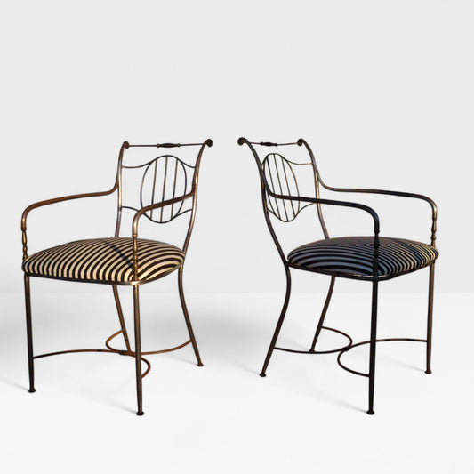 Pair of Mid-20th Century Neoclassical Iron Garden Armchairs in the Style of Maison Baguès