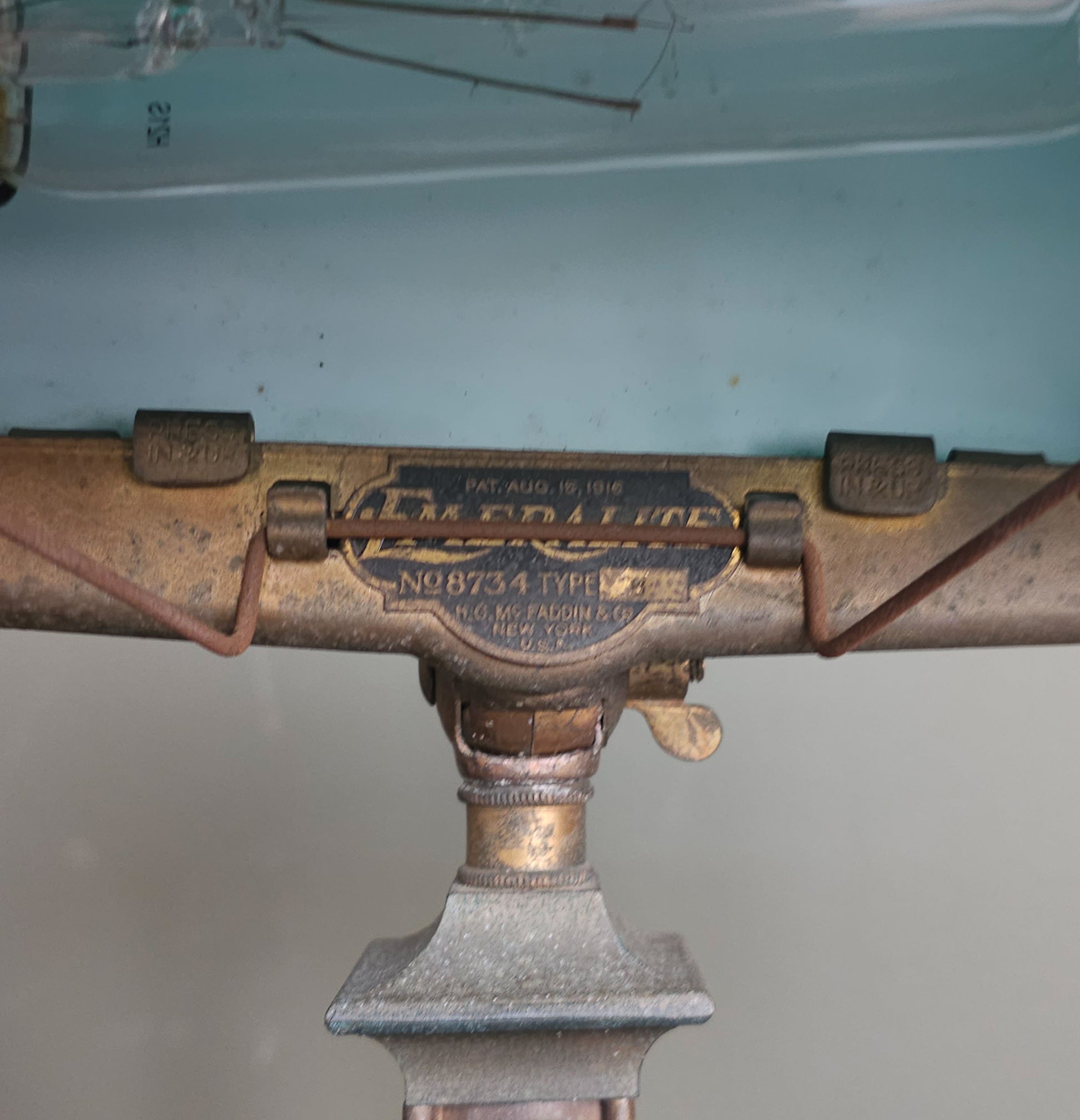 Very good vintage condition. Light, age-appropriate wear to the metal surfaces consistent with use. The lamp has been tested and is in working order. See photos for plug. Emeralite plaque on underside.