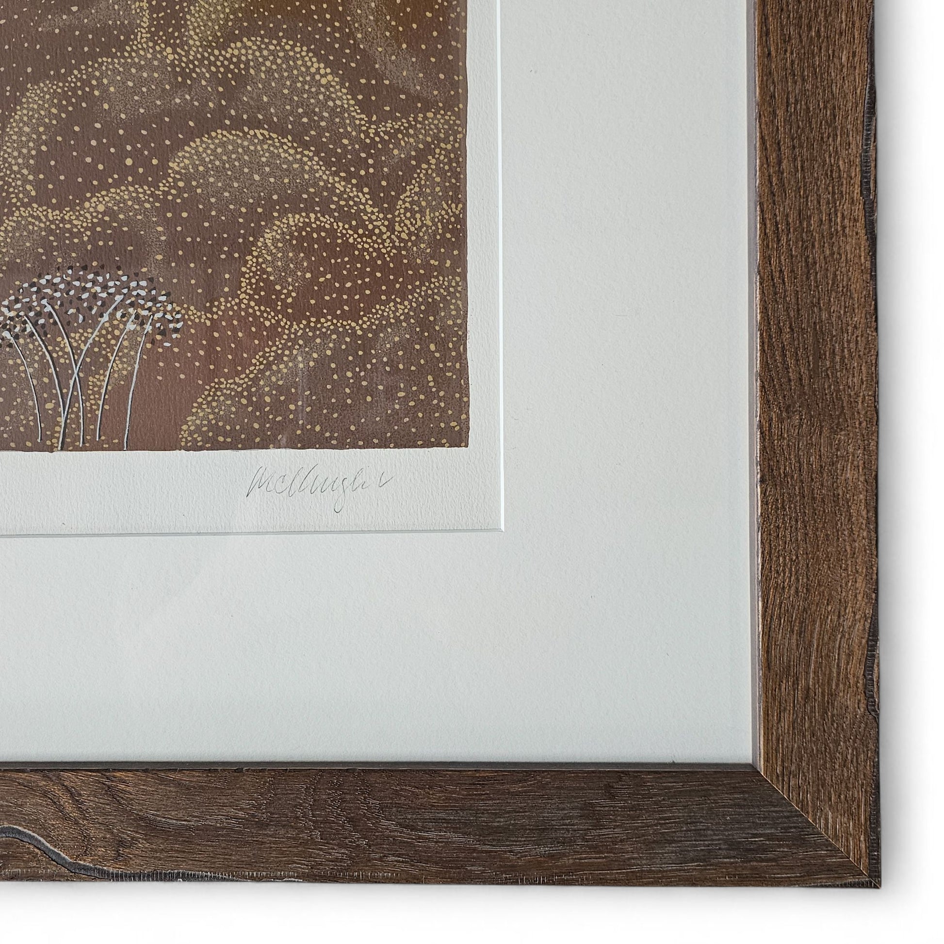 Signed “McKnight” in pencil at lower right and numbered A.P. 12/30 at lower left, this artist’s proof retains the clarity and graphic precision characteristic of McKnight’s work during this period. The print is presented in a handsome walnut composite frame with a wide mat that underscores the cool serenity of the sky and the rhythmic topography below.