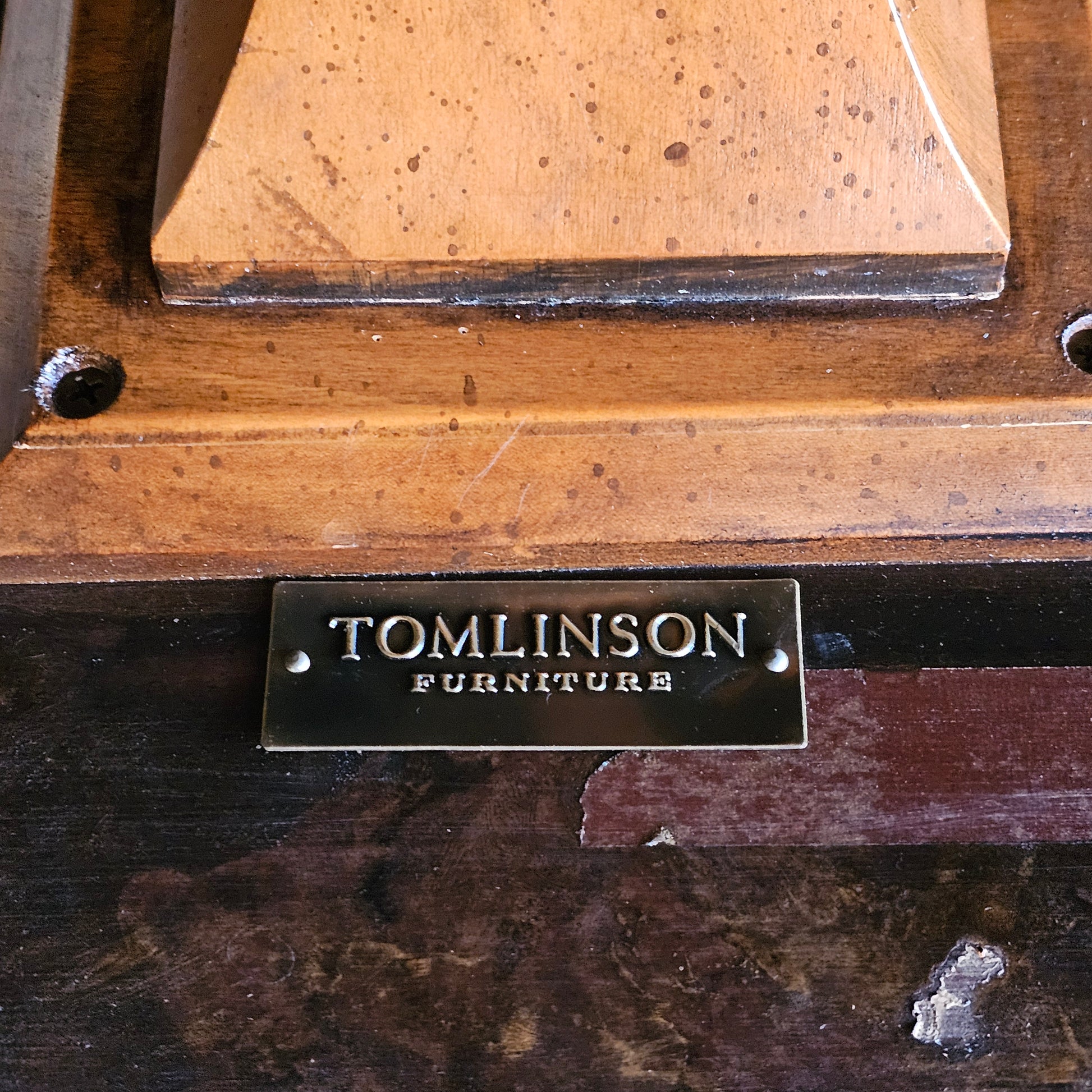 The table showcases the simplified classicism associated with Biedermeier design—clean geometry, restrained ornament, and an emphasis on the inherent beauty of wood. The ebonized top provides a structured counterpoint to the sculpted, faceted base. Stable, well-proportioned, and sized for use beside a lounge chair, sofa, or as a display pedestal. Tomlinson Furniture plaque on underside.